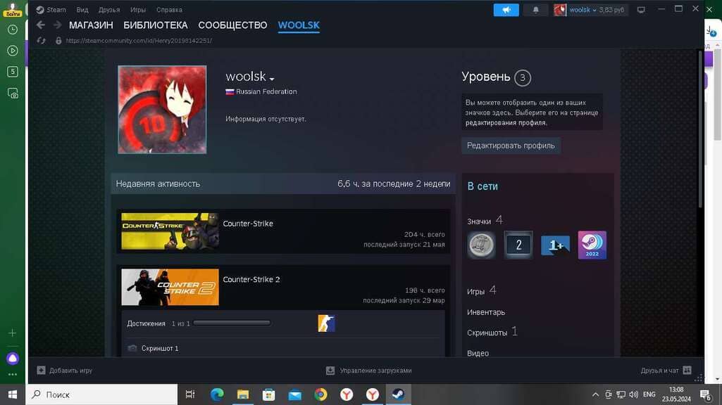 ⏱Часов в игре: 204;
