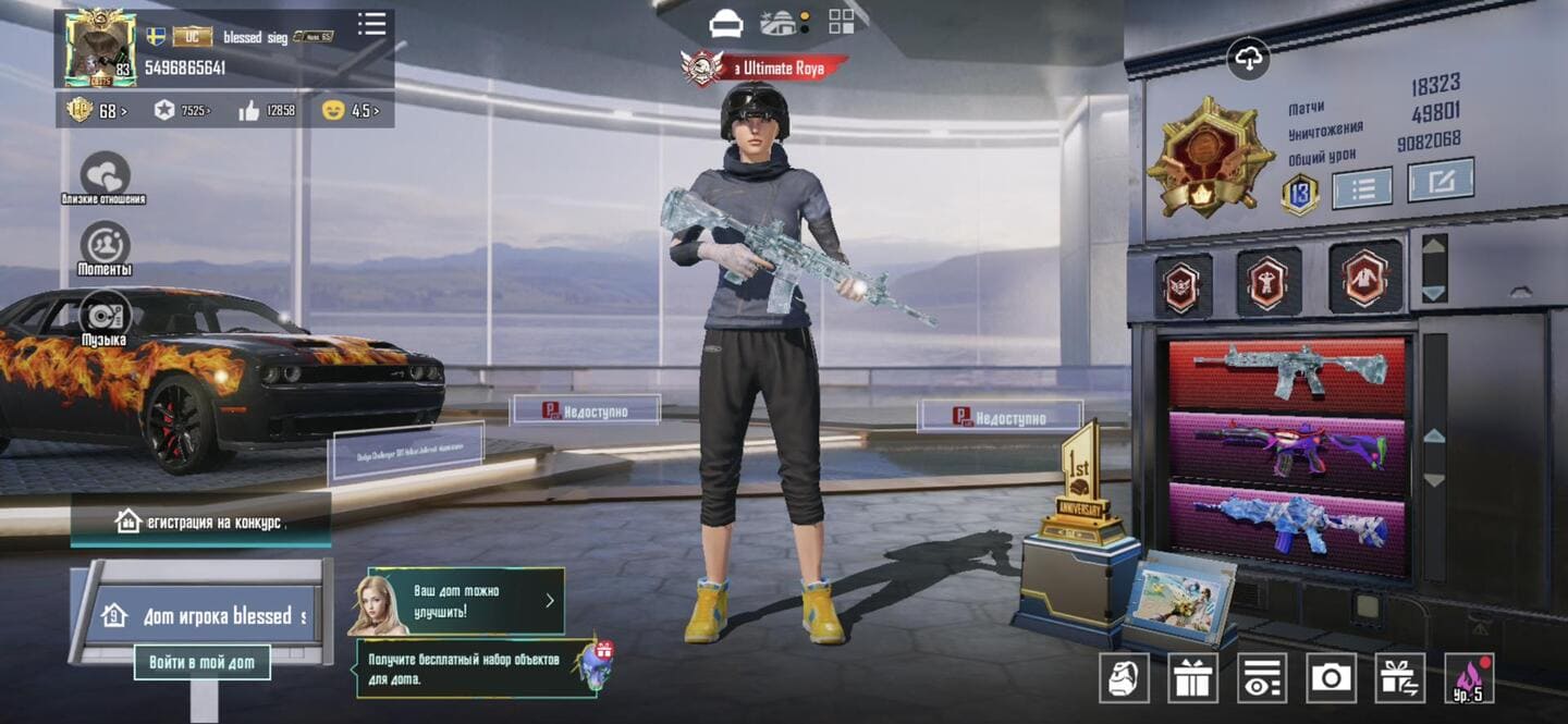 👚Топ костюмы: 26; ⭐️Royale Pass: с 5 сезонна; 🌈Скины на оружие: 13;