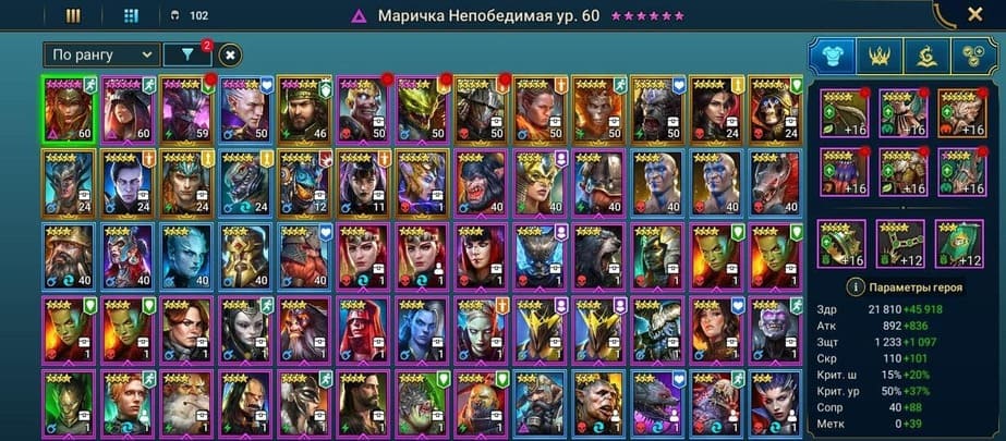 ⚡Уровень: 95 🔥Количество героев:: 108 💪Сила: 4,83 млн