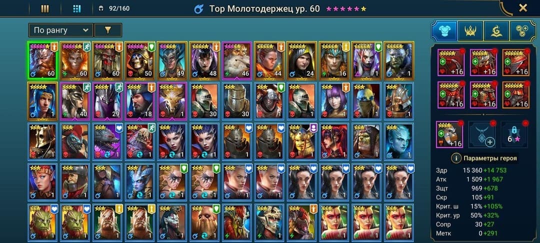 ⚡Уровень: 48 🔥Количество героев:: 91 💪Сила: 358к