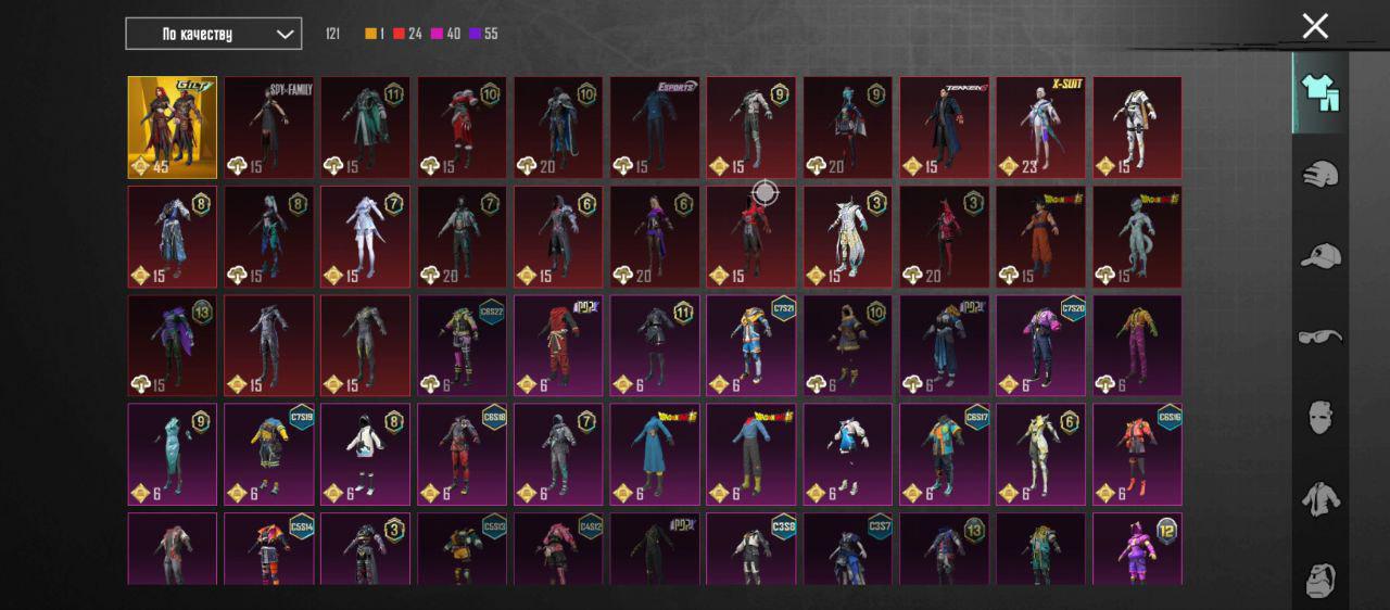 👚Топ костюмы: 42;⭐️Royale Pass: с 5 сезонна;🌈Скины на оружие: 32;