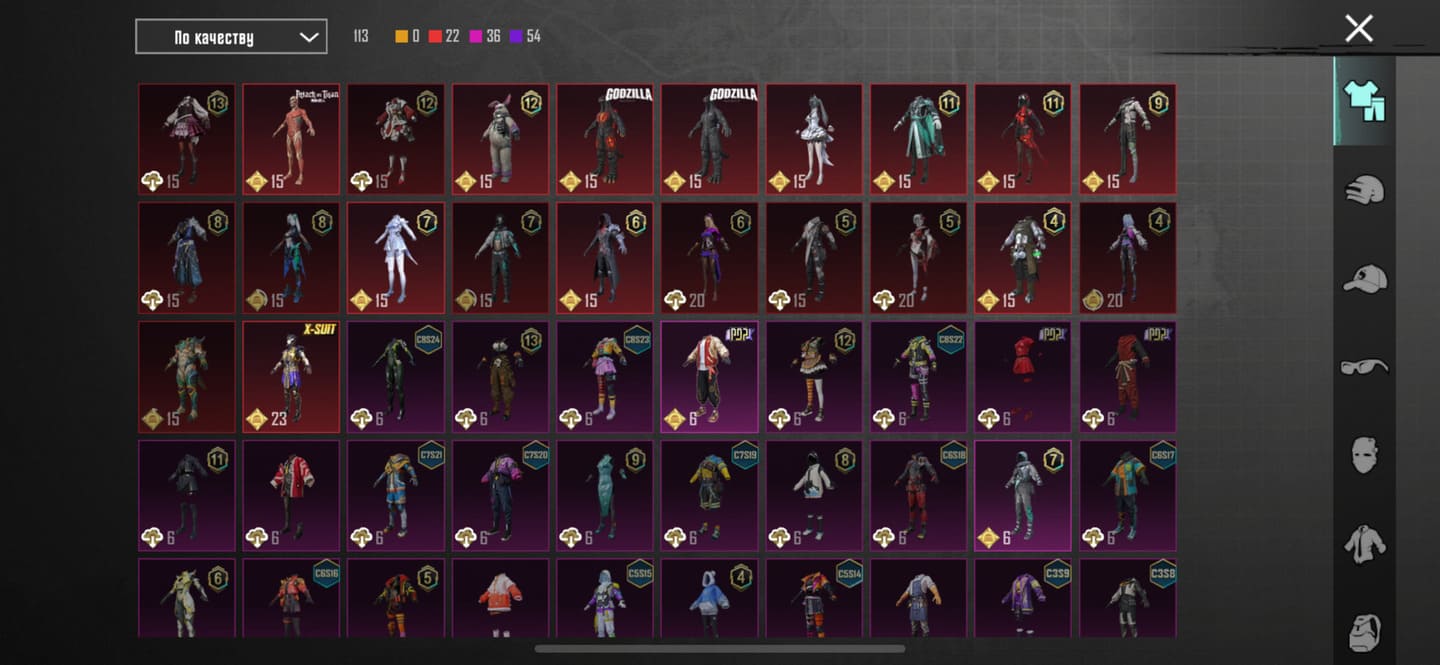 👚Топ костюмы: 34;⭐️Royale Pass: с 4 сезонна;🌈Скины на оружие: 28;