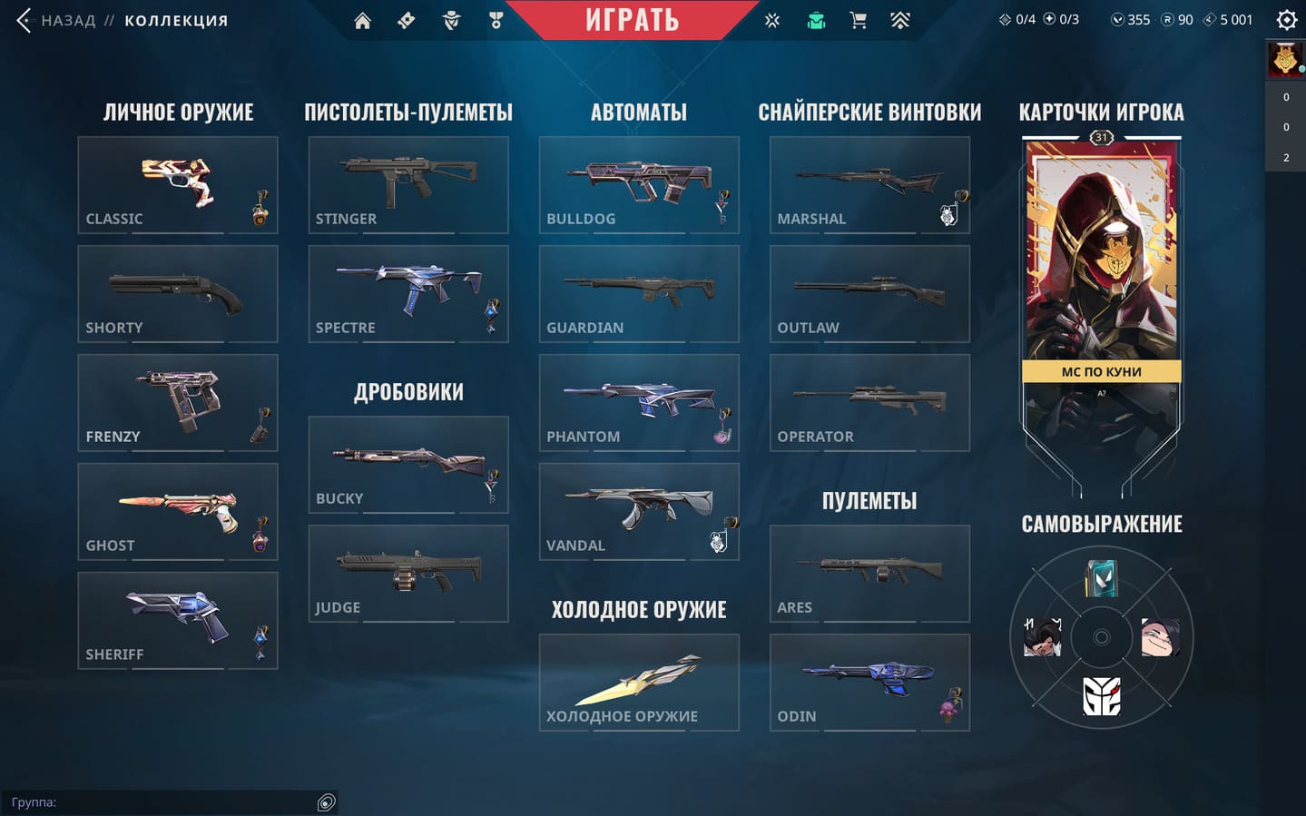 🥈Battle Pass: 1-5 Акт;✨Агенты: 27;🔫Скины на оружие: 60+