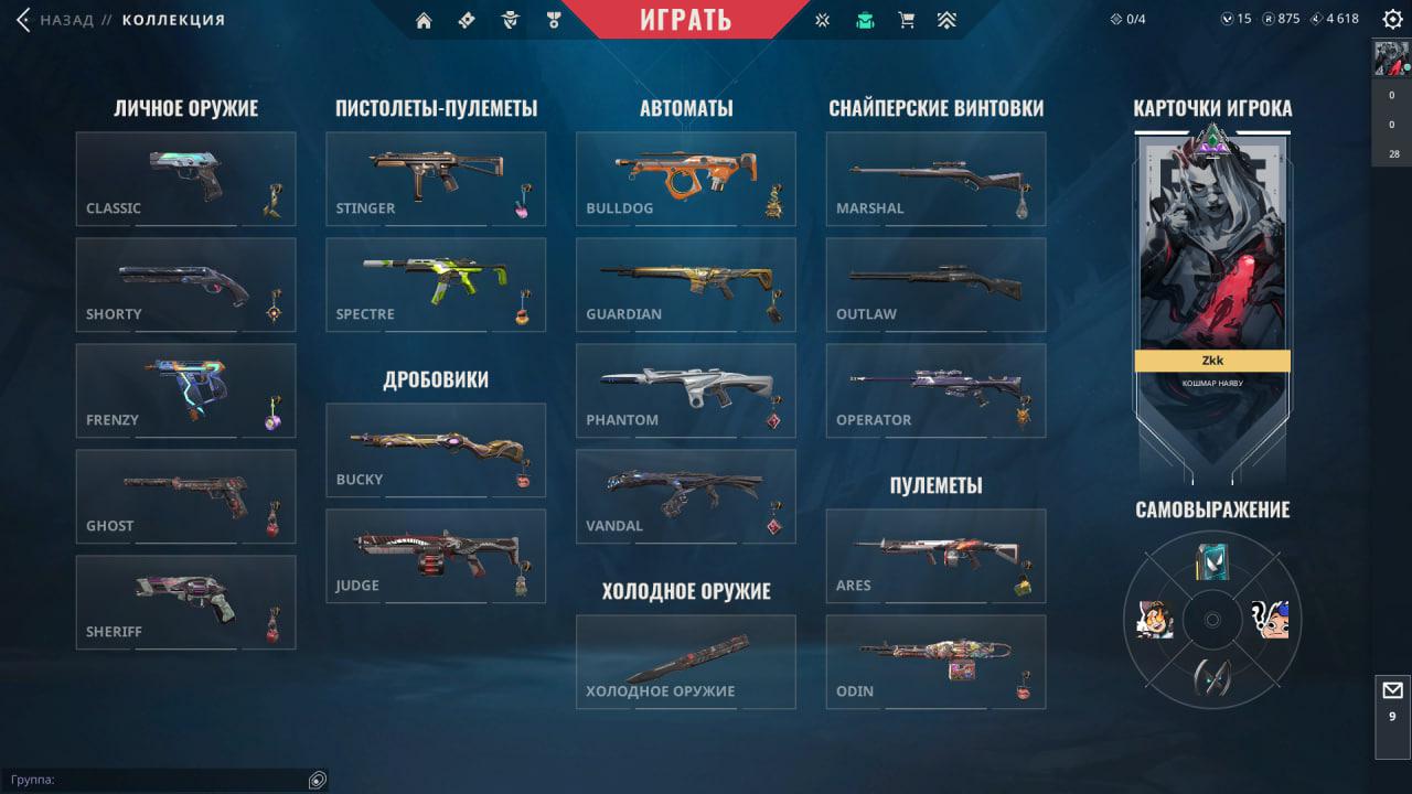 🥈Battle Pass: 1-3 Акт;✨Агенты: 22;🔫Скины на оружие: 50+