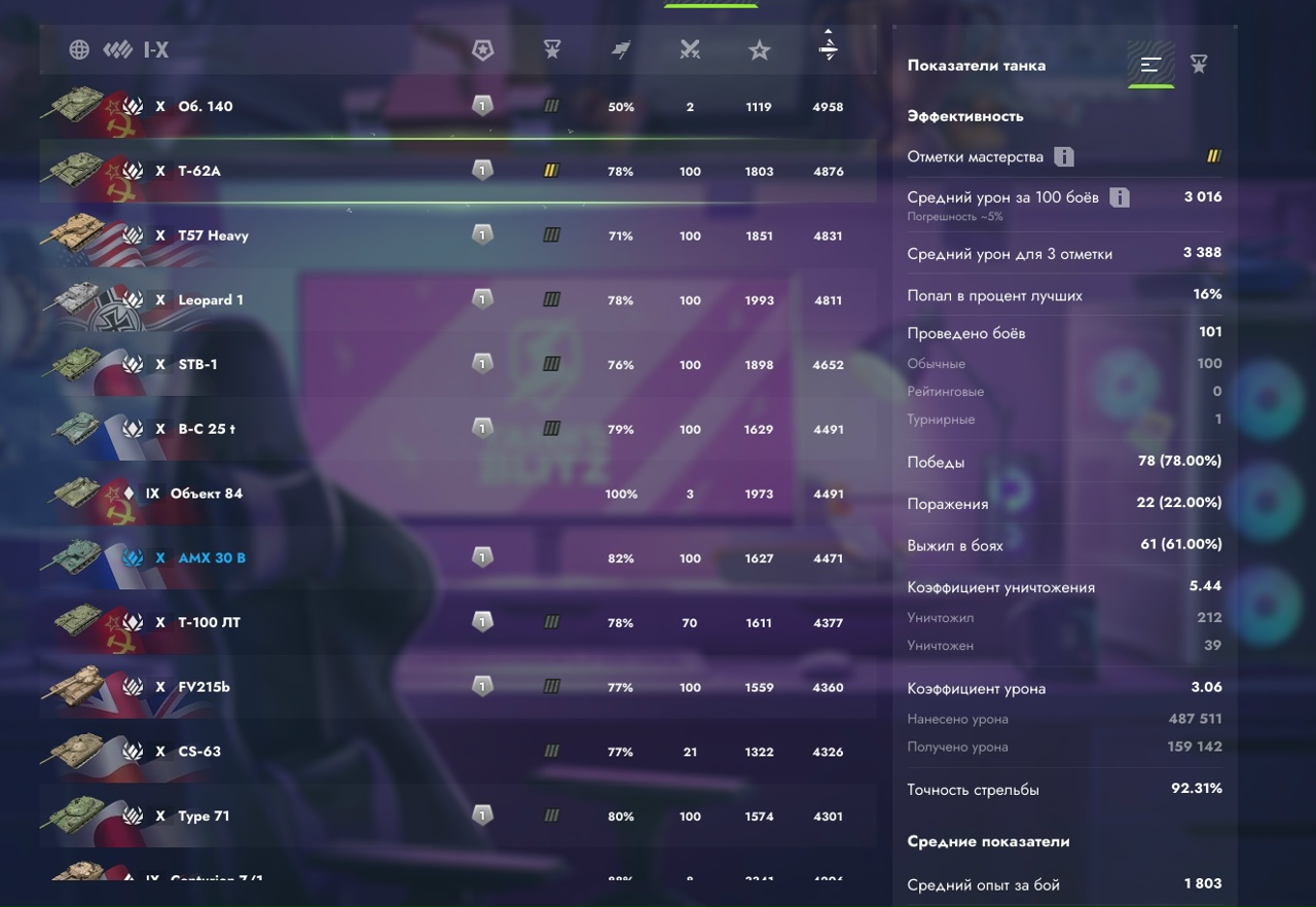 Прокачиваемые:Т100-лт, Sheridan, T-57 Heavy, FV4202, WZ113G FT, AMX 50B, CS-63, T-62A, Об. 140, Leopard 1, Vickers Light, Fv 215b, STB-1, B-C 25t, Type 71