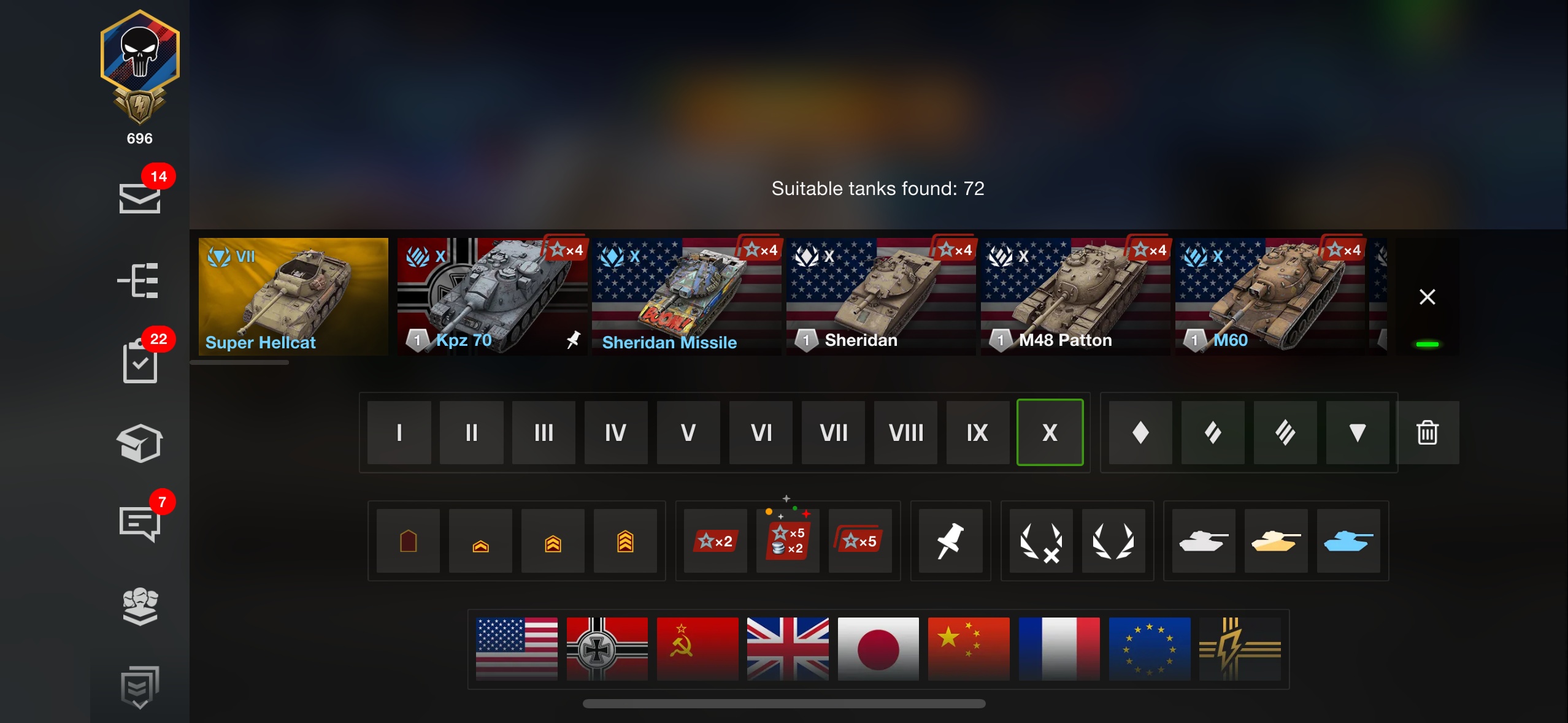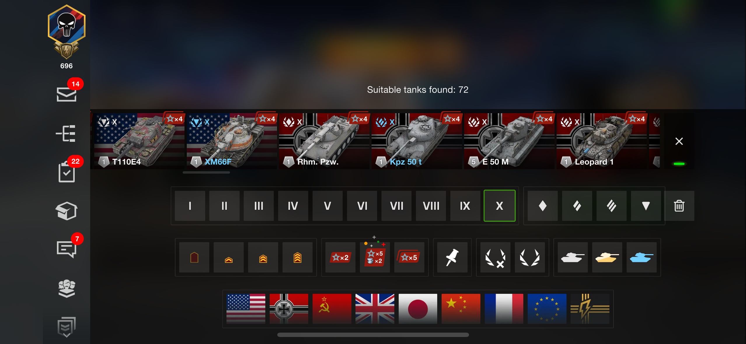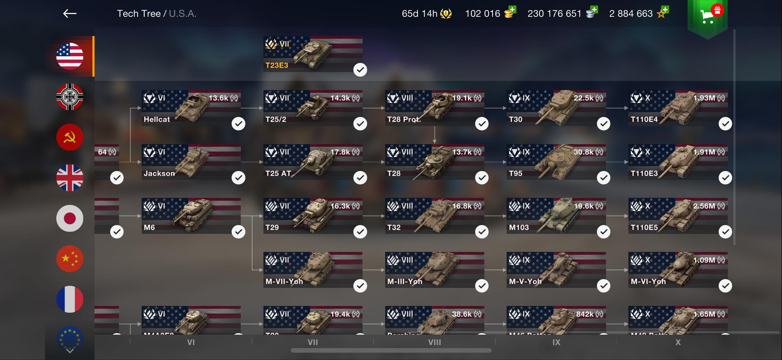Техника: 72 танка 10 уровня, 24 коллекционки 10 уровня; 225 коллекционных танков, 77 премиум (уничтожитель, кени-отсу, дракула, крушитель и тд)